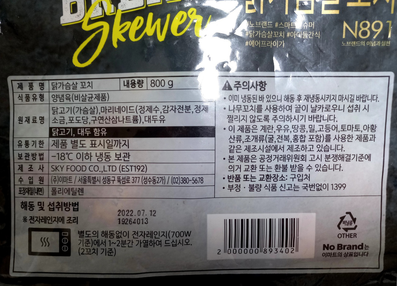 이마트 노브랜드 닭가슴살 꼬치&숯불 데리야끼 양념닭꼬치 본문