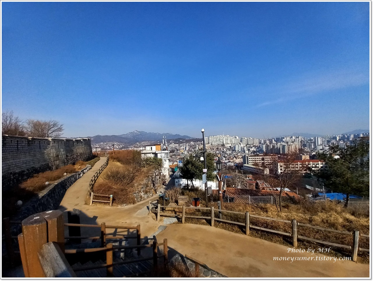 성곽에서 바라본 도심의 건물들이 조선시대에는 초가집이나 한옥의 모습이었겠죠?!~