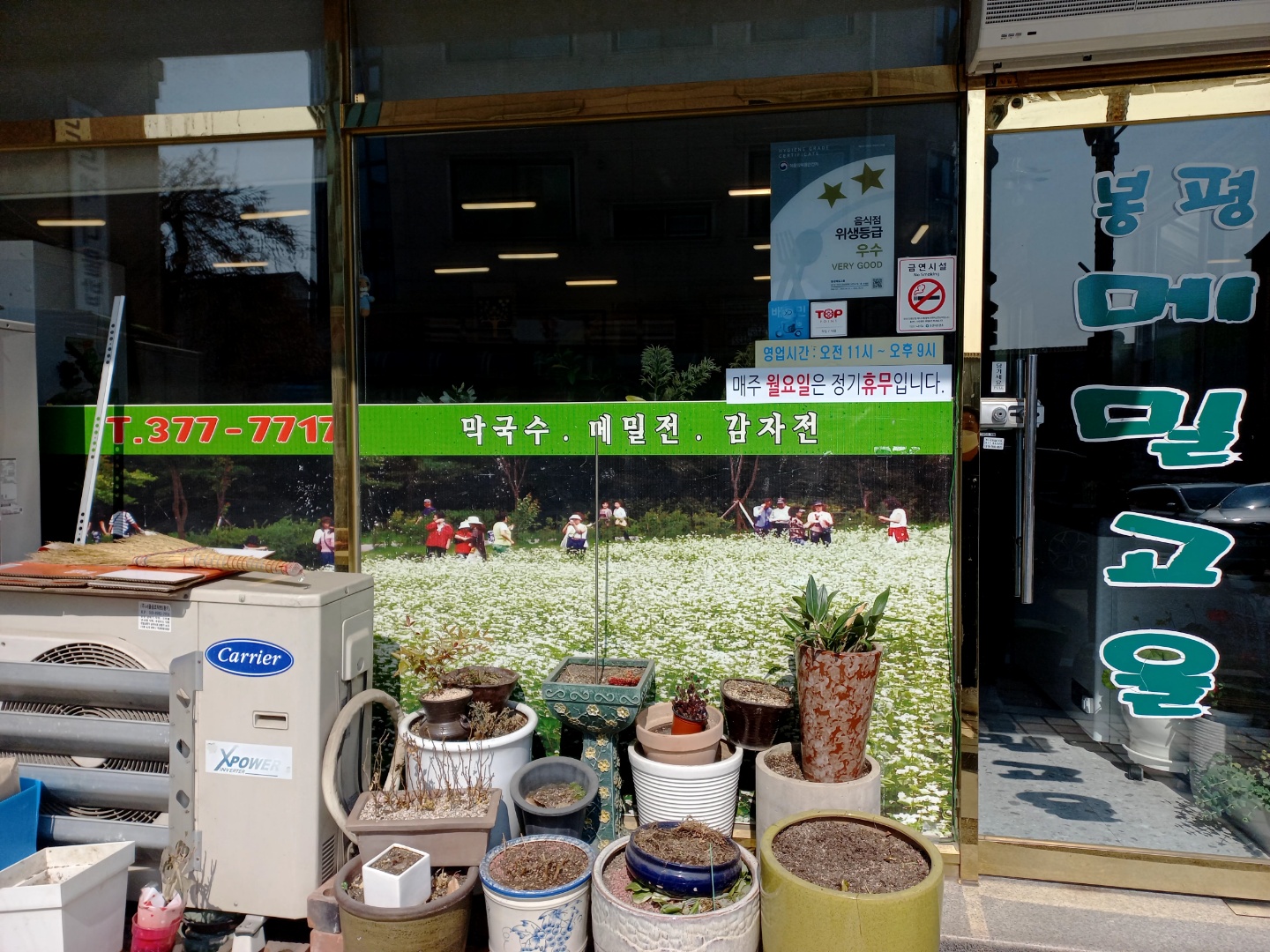 오산 물향기수목원 구경을 하기 전 점심을 먹기 위해 음식점 이곳저곳을 기웃대다가 봉평메밀고을로 들어갔어요~