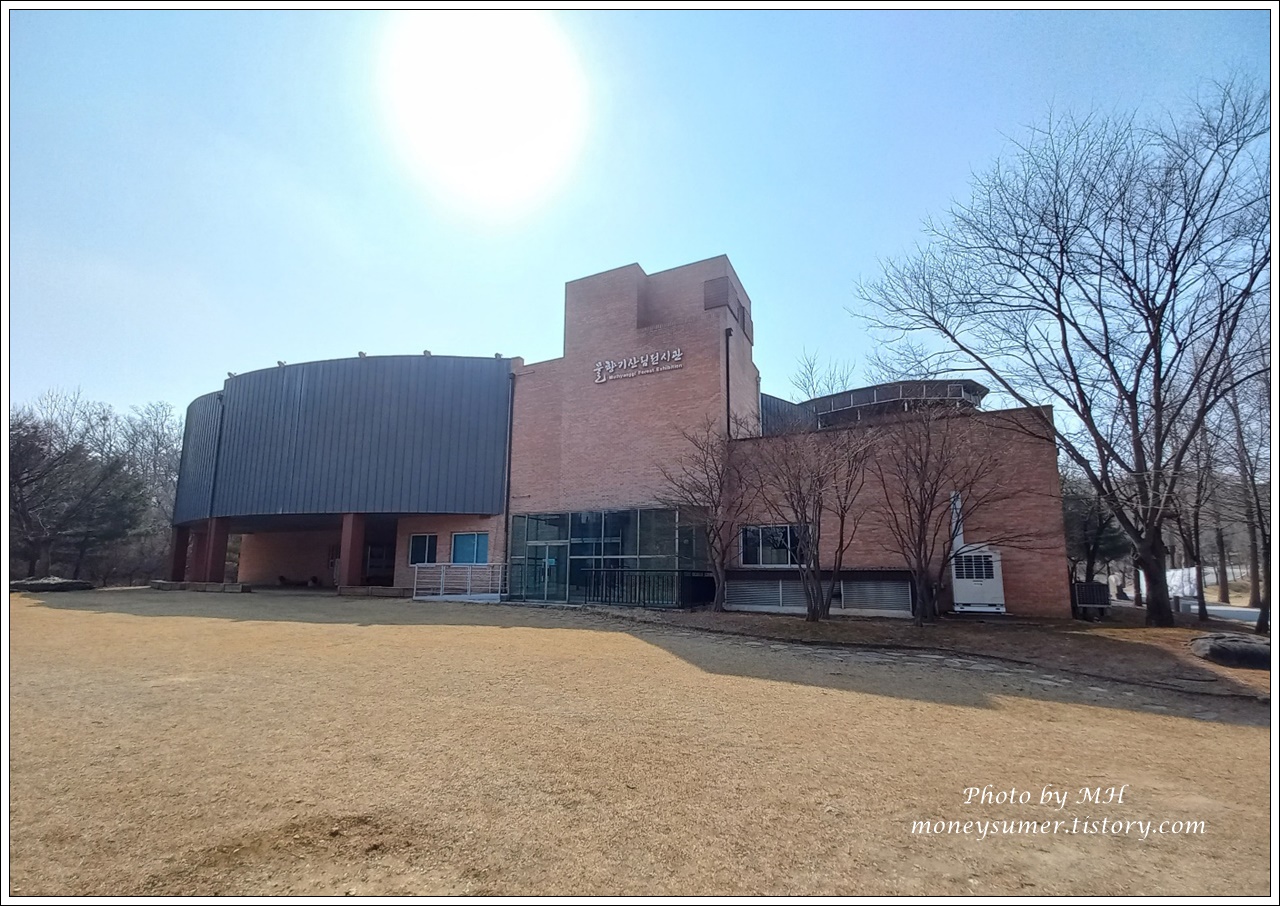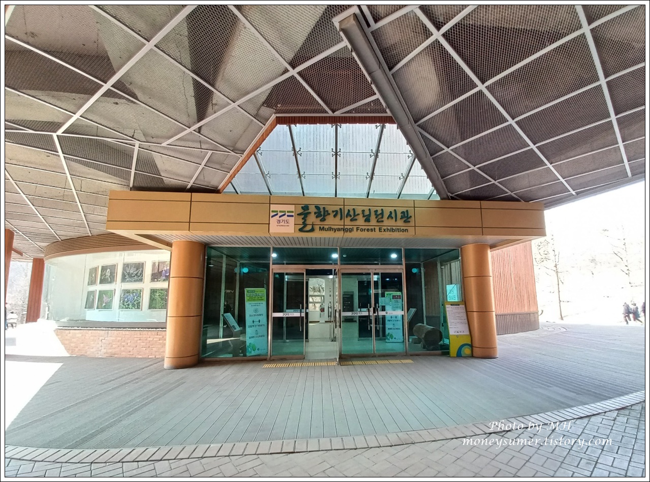 500평 규모의 지하 1층과 지상 2층으로 지어진 물향기 산림전시관이랍니다.