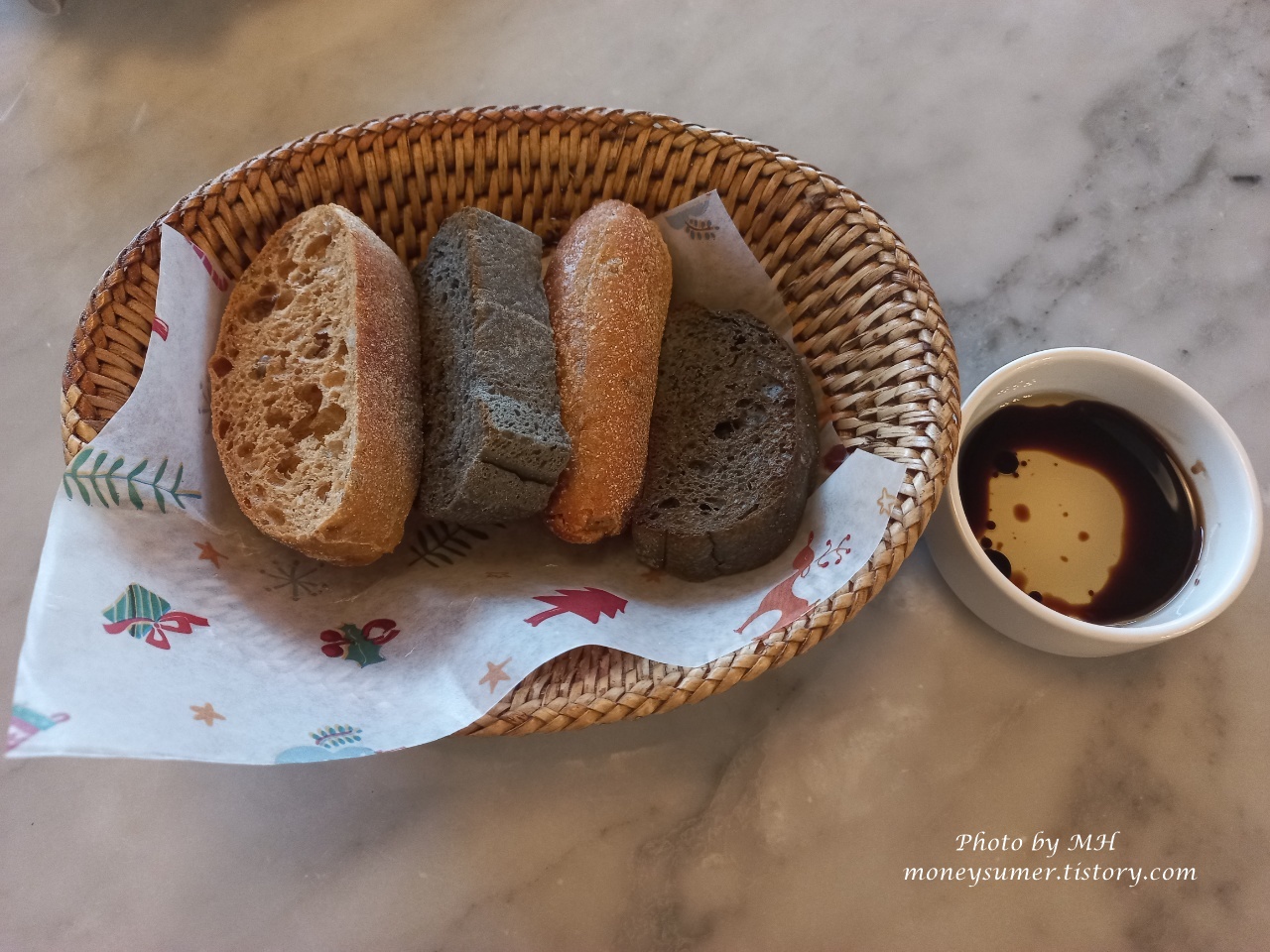 그냥 먹어도 맛있고 빵과 함께 먹어도 맛있어요~ 빵은 식전 빵과 똑같은 게 나왔더라고요~