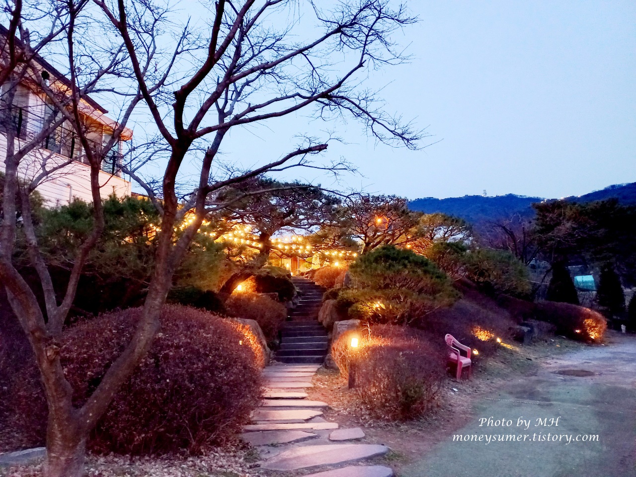 불이 들어오니 야외정원이 훨씬 아름답게 보이네요~