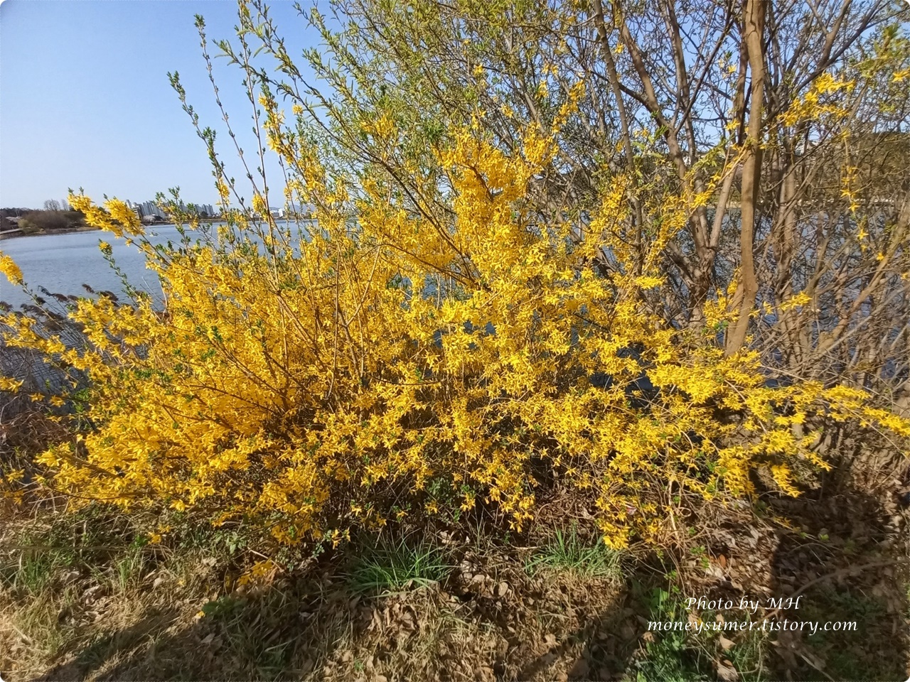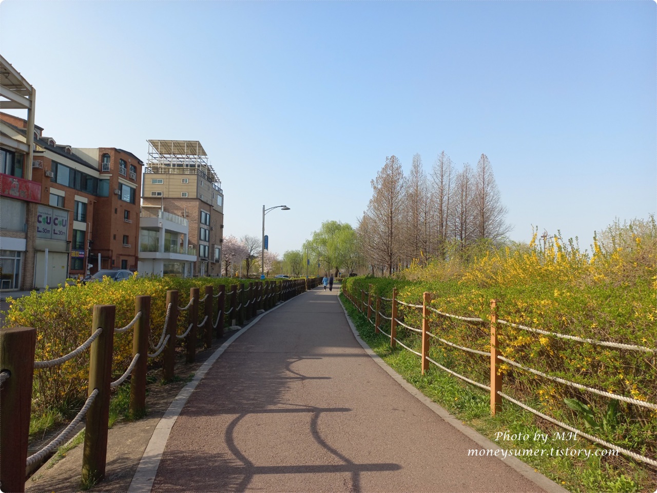 산책길 양옆으로 개나리가 피어있어서 너무 예쁘네요~