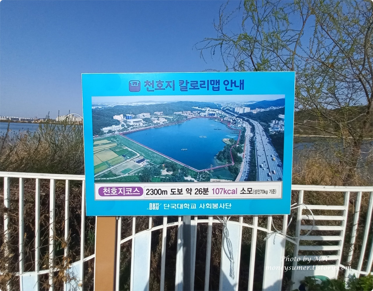 천호지 코스는 2300m이고 도보로 약 26분밖에 안 걸리는 곳이라 단대 호수만 구경을 하기에는 아쉬움이 있어서 바로 옆에 자리 잡고 있는 단국대로 들어가 봤어요~