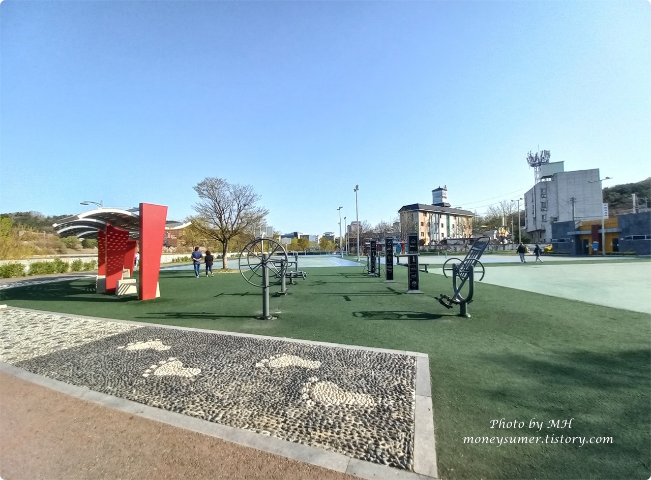 주차는 안서 제1공영주차장에 무료로 이용했어요. 다음 지도에서는 안서 제1공영주차장으로 되어 있고 네이버 지도에서는 천호지 생활체육공원 공영주차장으로 되어 있네요~ 넓은 주차장이지만 주말 붐비는 시간에는 이곳도 부족할 듯싶네요~