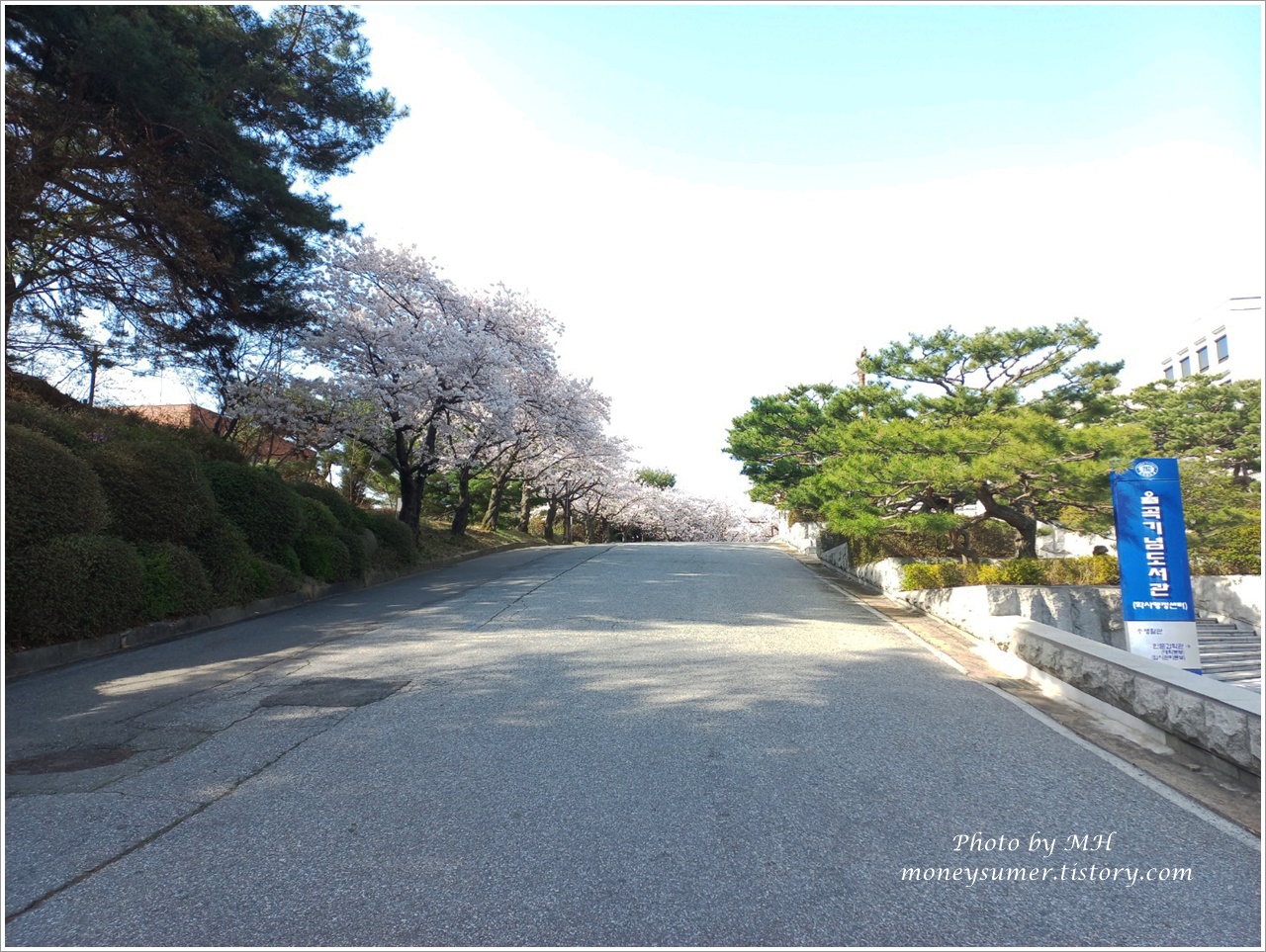 율곡 기념도서관 옆길도 벚꽃이 줄지어 서있어서 길이 참 예뻤어요~