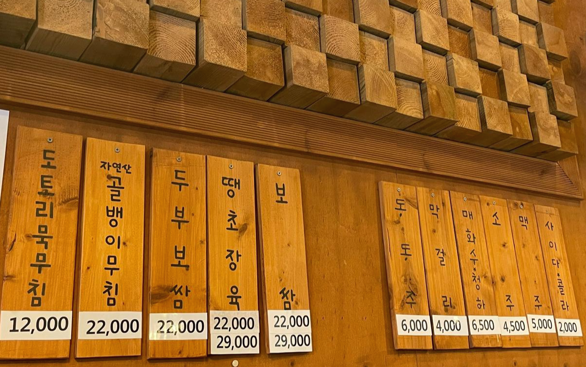 도토리무침, 골뱅이무침, 두부보쌈, 땡초장육, 보쌈도 있어요~