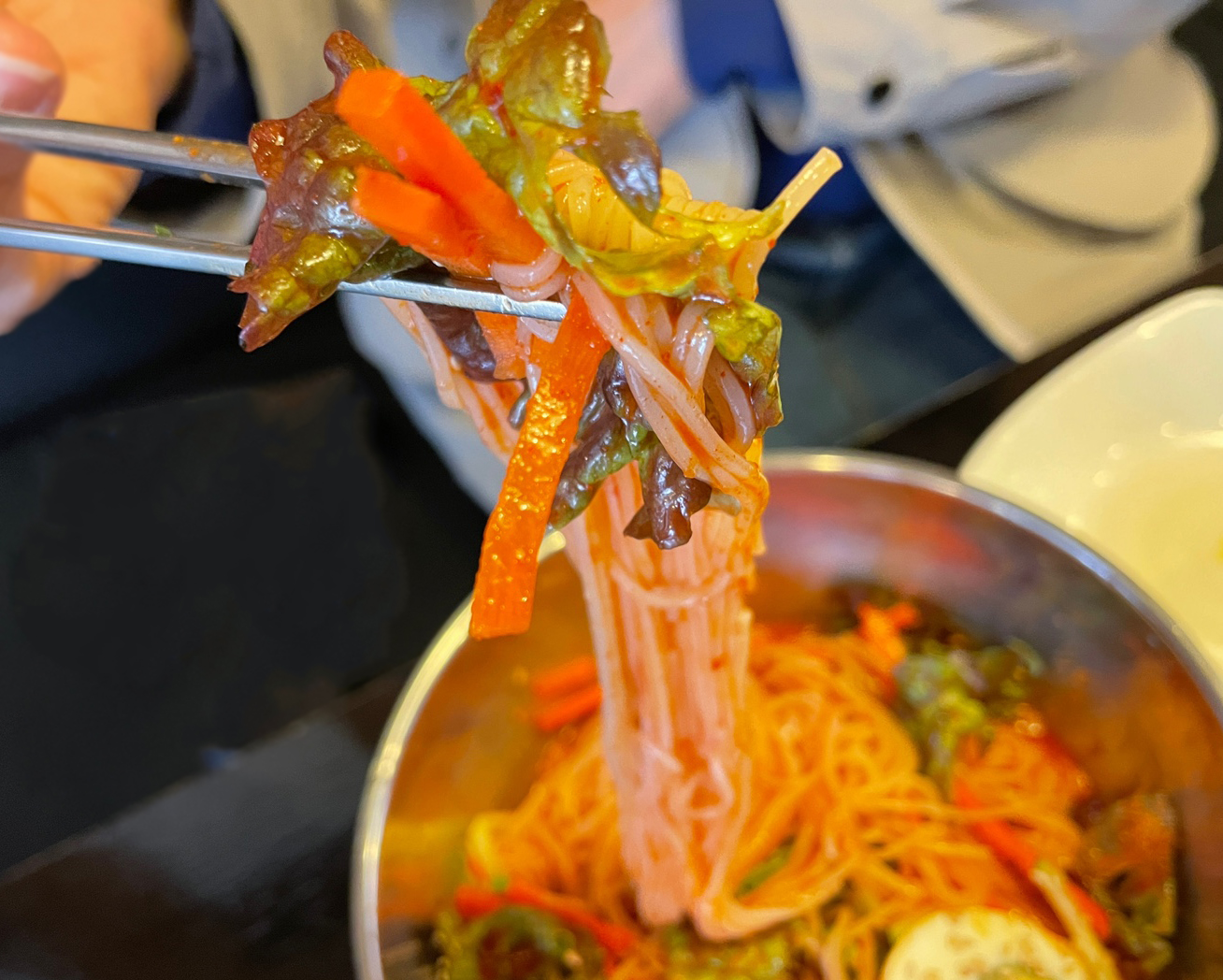상추, 오이, 당근이 들어간 비빔국수에 달걀까지 들어가 있어서 비주얼부터 군침이 확 돌더라고요~
