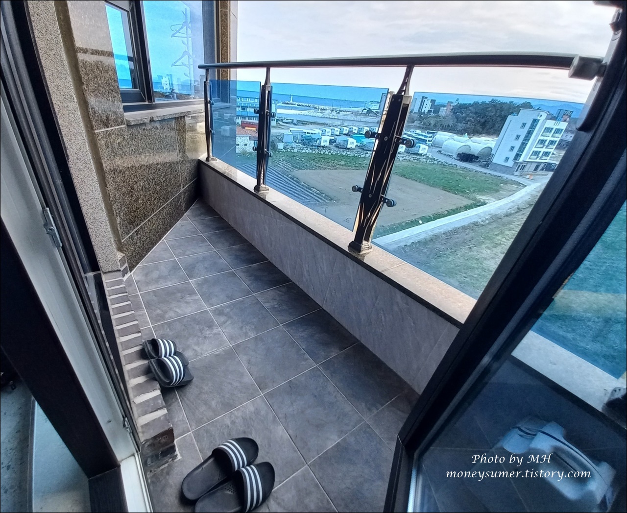 베란다에는 두 켤레의 슬리퍼도 있고 이곳에서 바라보는 경치도 좋네요~