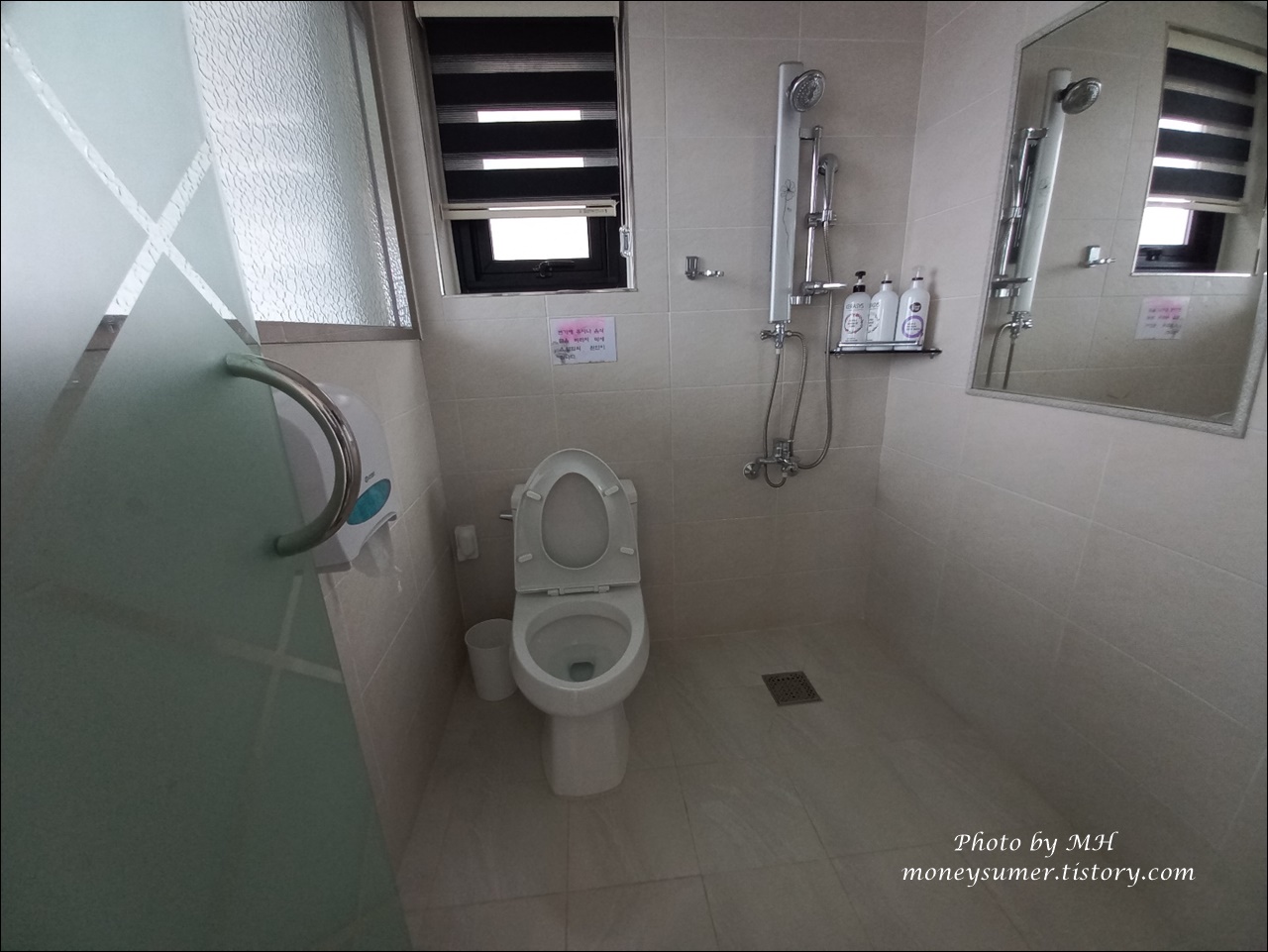 욕실도 깔끔하고 바디워시, 샴푸, 린스도 있어요~
