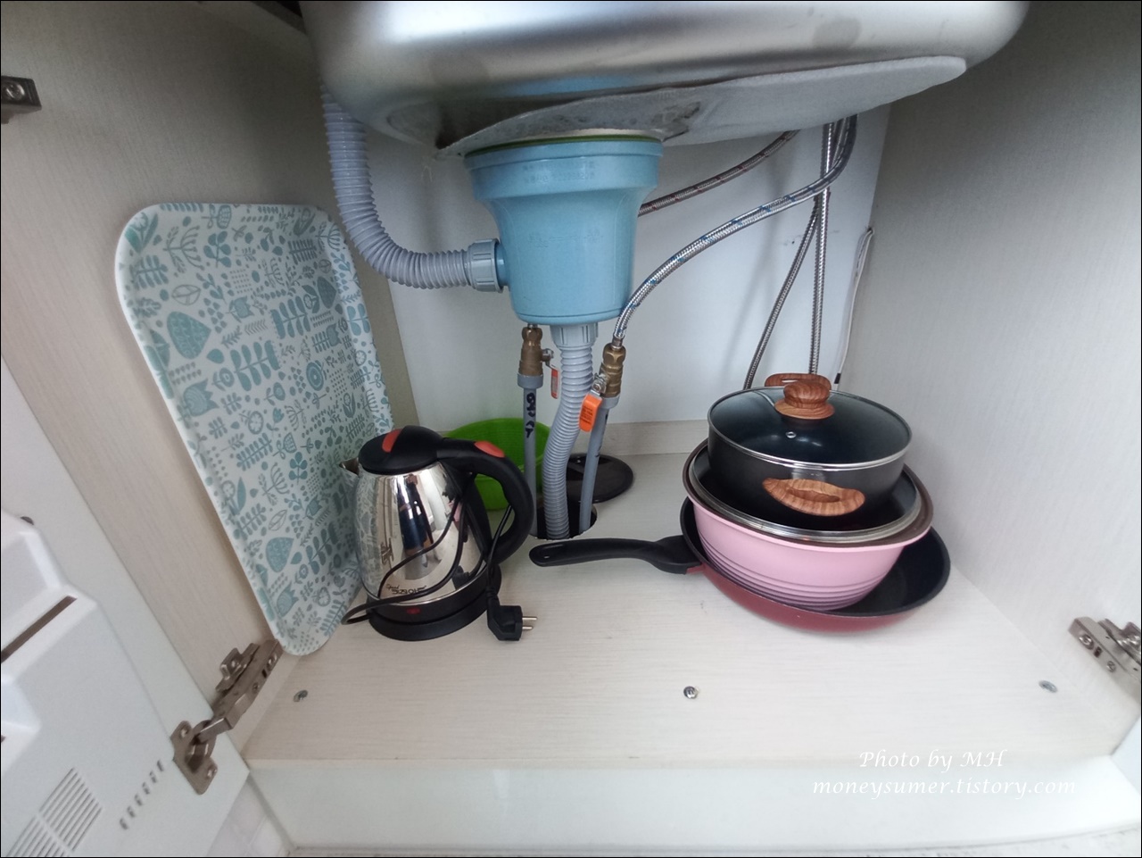 쟁반, 전기포트, 냄비, 프라이팬도 있고