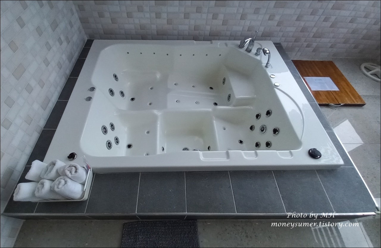 무엇보다 널찍한 스파가 마음에 들더라고요~ 성인 두 사람이 사용하기에 충분한 공간이라 좋았어요~