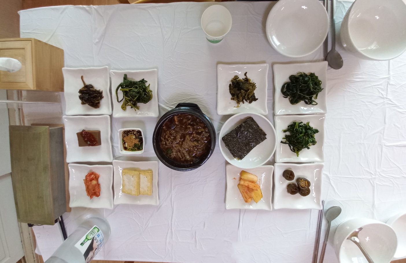 배추김치, 도토리묵, 두부전, 각종 나물들,