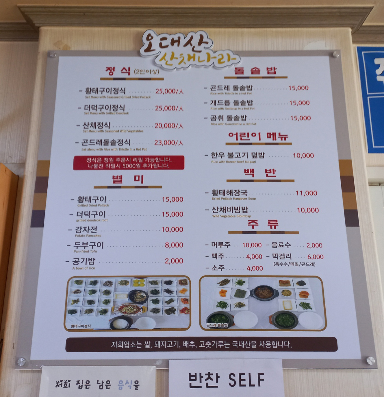 아무래도 산채나물은 대부분의 어린이들이 안 좋아하니 어린이 메뉴가 따로 있는 게 좋네요~