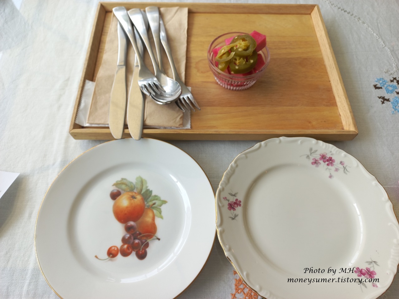 10시 조금 넘어서 갔기 때문에 루프탑에서 커피와 차 먼저 즐긴 후 브런치가 나오는 시간인 11시에 다시 2층으로 가서 식사를 기다렸어요~ 직원분이 루프탑에서 먹어도 상관없다고 하셨지만 3층까지 서빙하기가 힘드실 것 같기도 하고 바깥 날씨가 후덥지근하기도 해서 2층 실내로 들어왔어요~