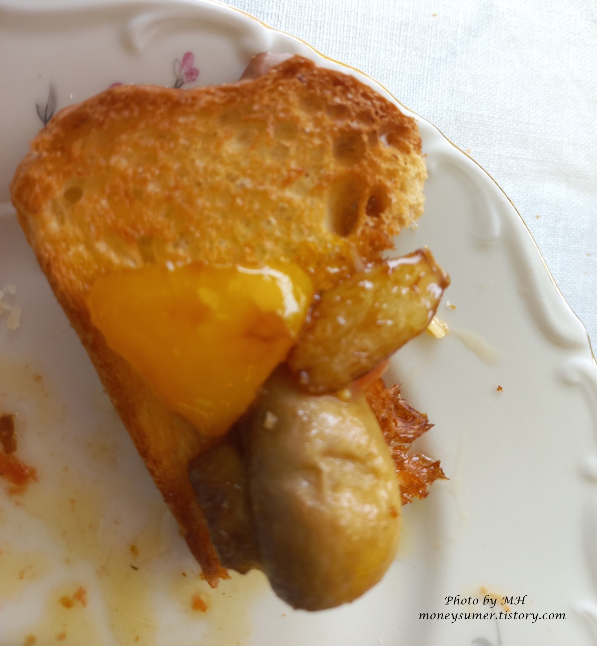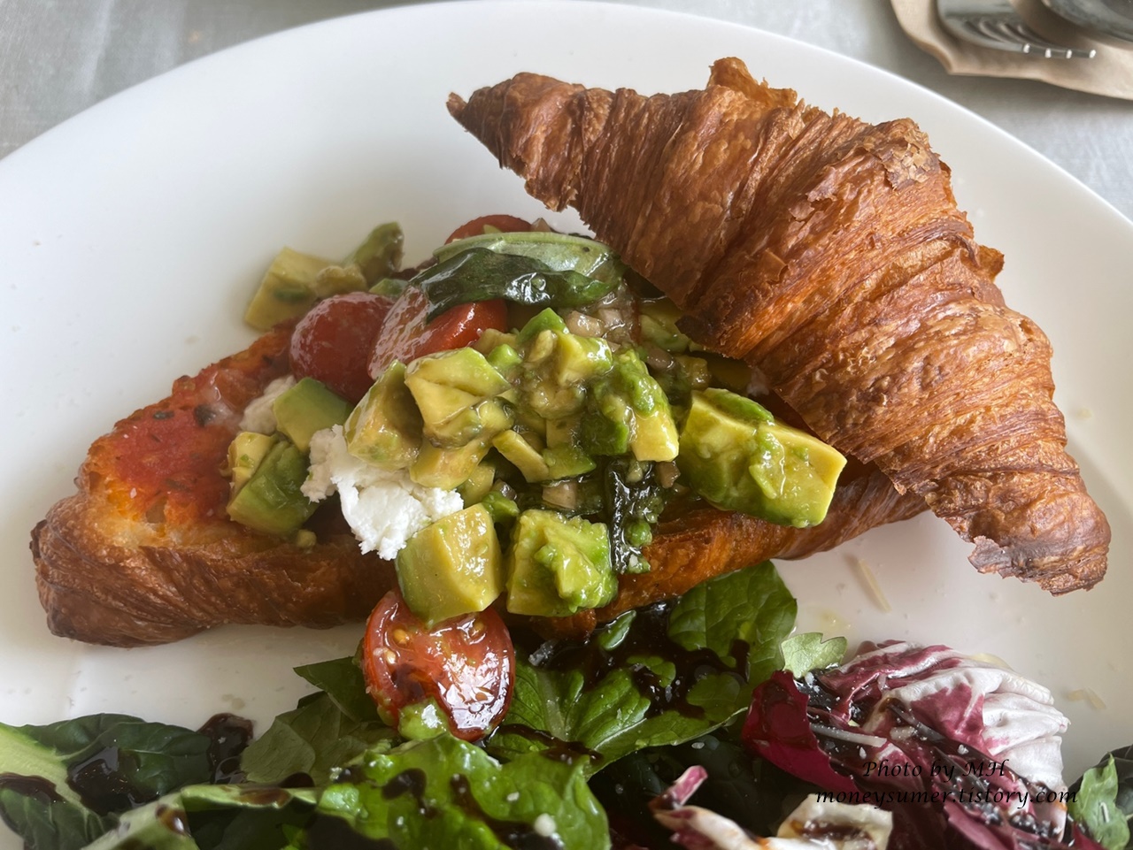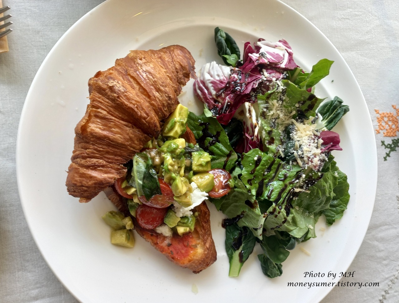 샐러드 신선하고 위쪽 크로와상은 바삭하니 맛있어요. 아래에 놓여있는 빵은 소스와 아보카도가 놓여 있어서 시간이 지나니 눅눅해지더라고요~ 맛있게 드시려면 아래에 놓여있는 빵부터 빨리 드시는 게 좋을 것 같아요~