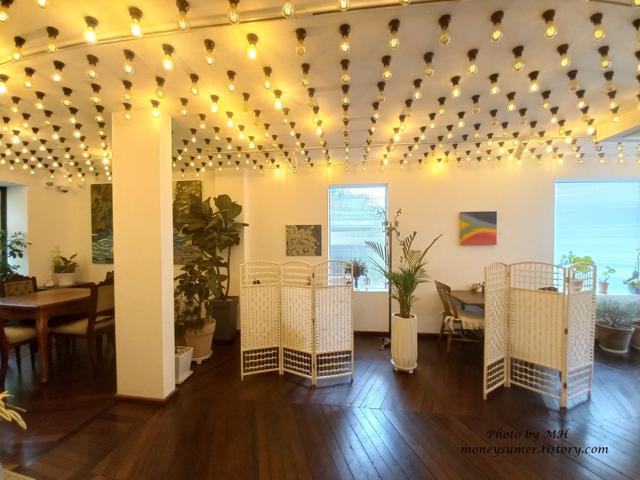 각각의 테이블마다 파티션이 쳐져 있어서 남들 신경 쓰지 않고 편하게 브런치와 차를 즐길 수 있어요~