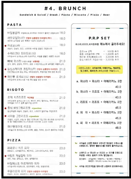 샌드위치, 스테이크, 파스타, 리소토, 피자, 세트메뉴까지 다양한 메뉴가 참 많이 있네요~