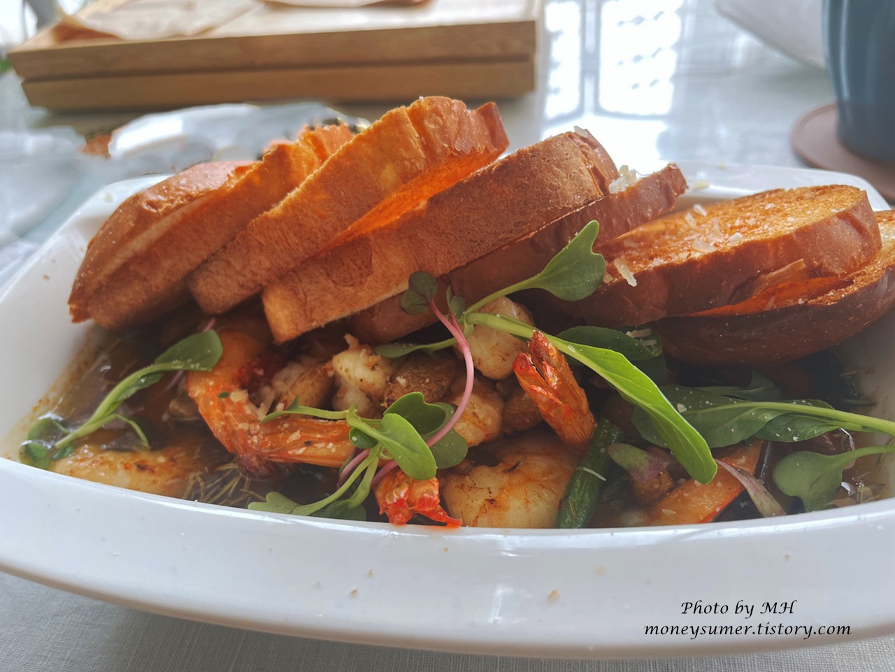 부드러운 새우와 바삭한 빵을 소스에 찍어먹으니 정말 맛있네요~