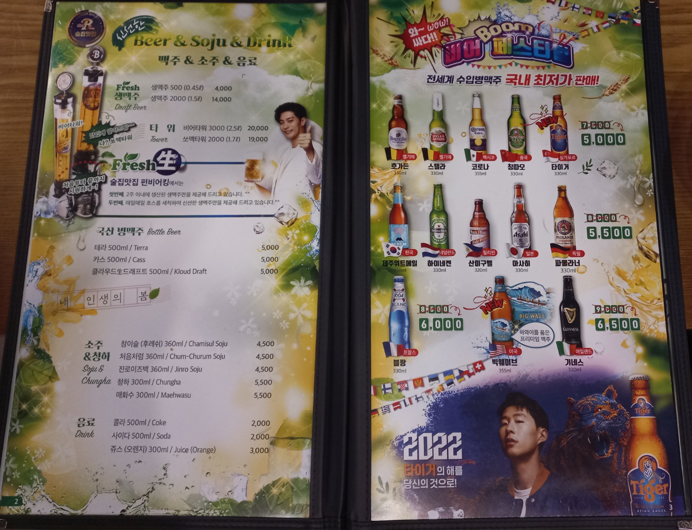 생맥주를 비롯해서 국산 병맥주와 전 세계 수입병맥주까지 다양하게 판매하고 있고 소주와 음료도 있어요~