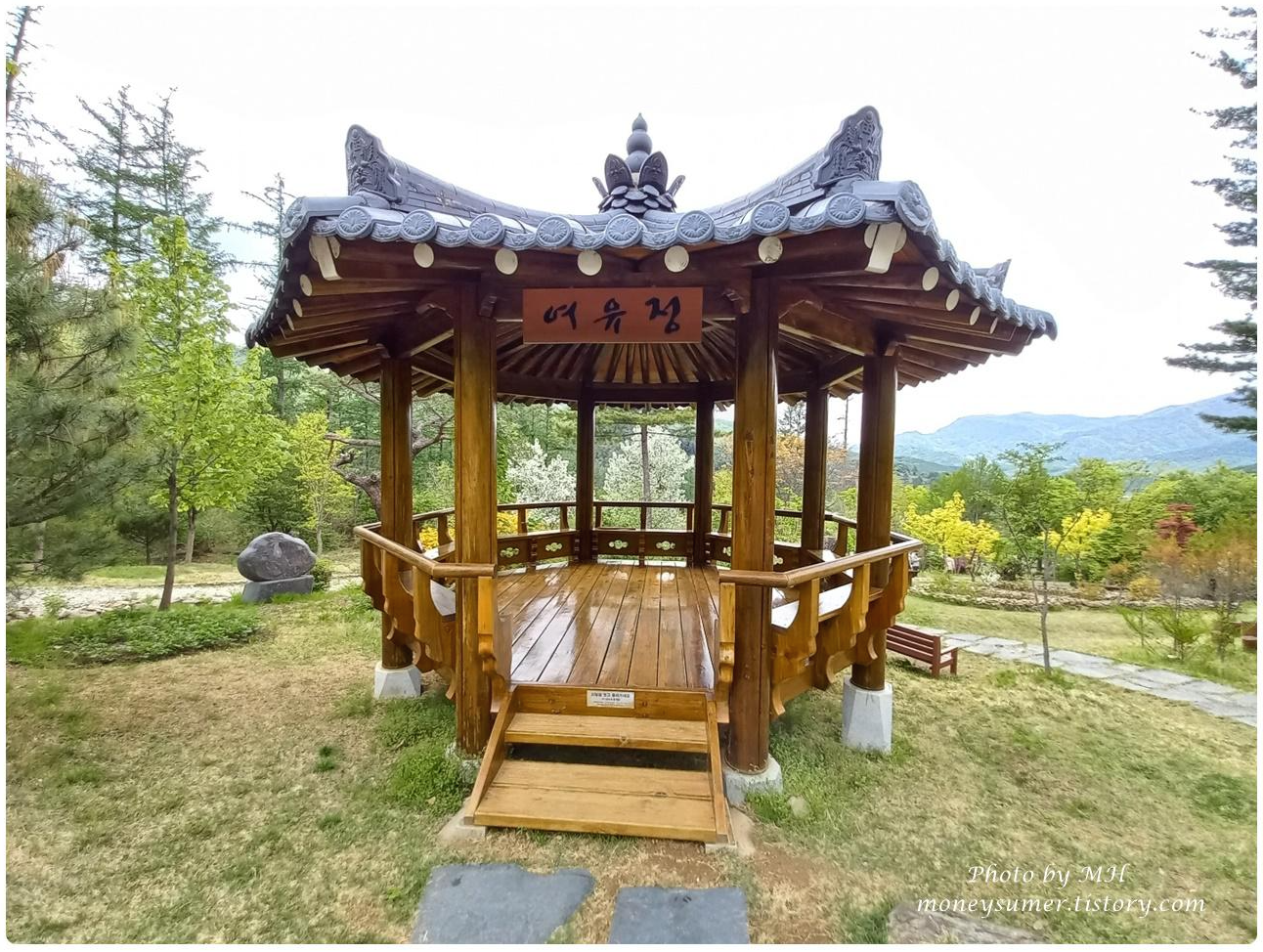 지은 지 얼마 안 되었는지 여유 정이라는 정자가 매우 깔끔해 보여요~ 바닥이 반짝반짝!