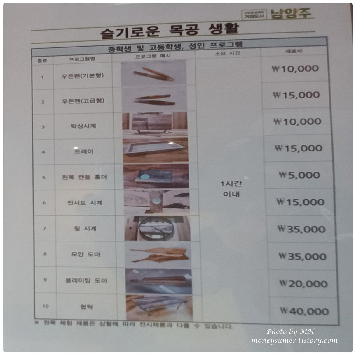 어린이 프로그램인 창의력 뿜뿜 목공교실도 있고 중학생 이상 성인까지의 프로그램인 슬기로운 목공 생활도 있으니 체험하실 분들은 참고하세요~