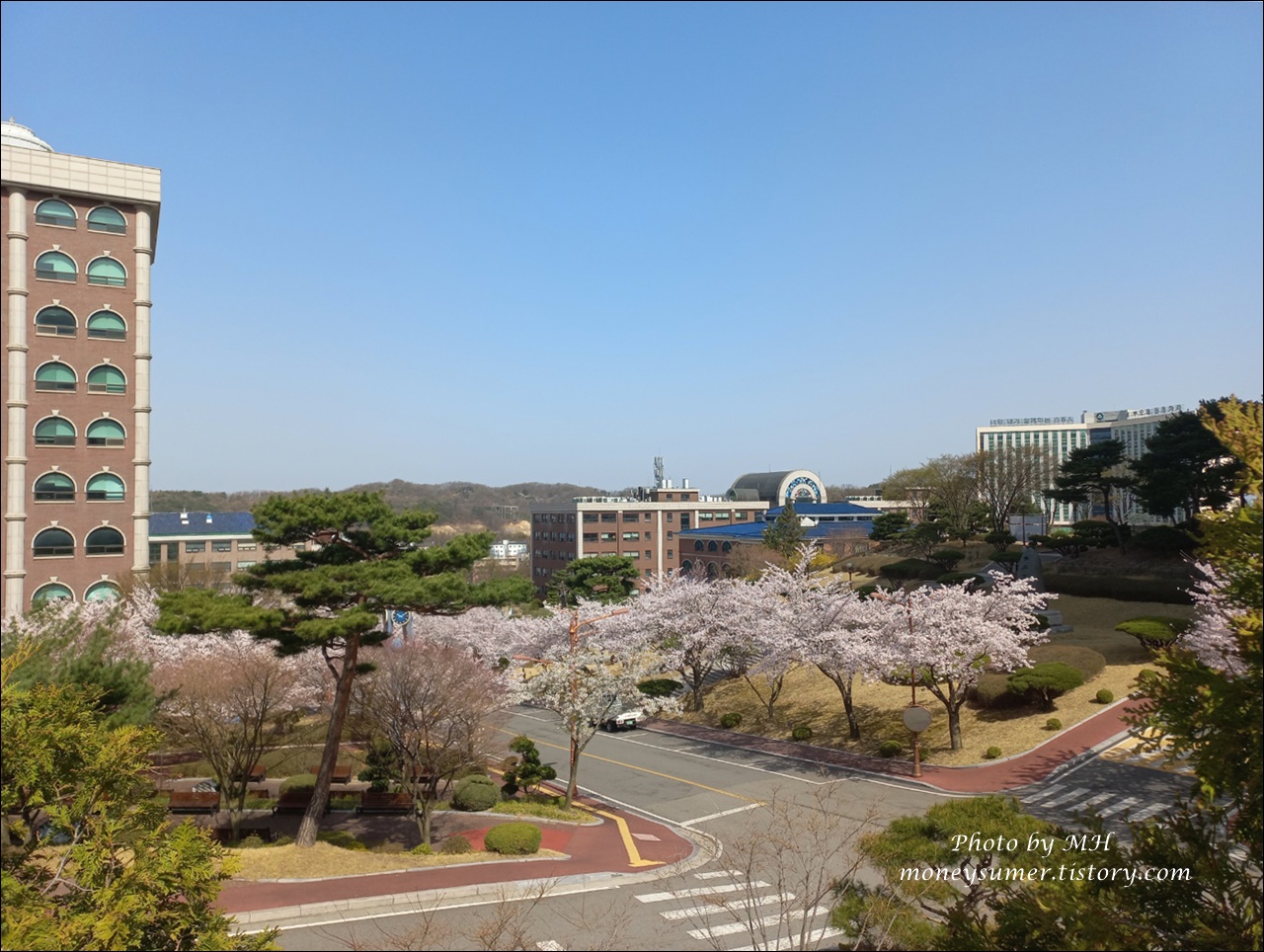 한창 벚꽃이 필 때 갔기 때문에 캠퍼스에 벚꽃이 화려하게 피어 있더라고요~
