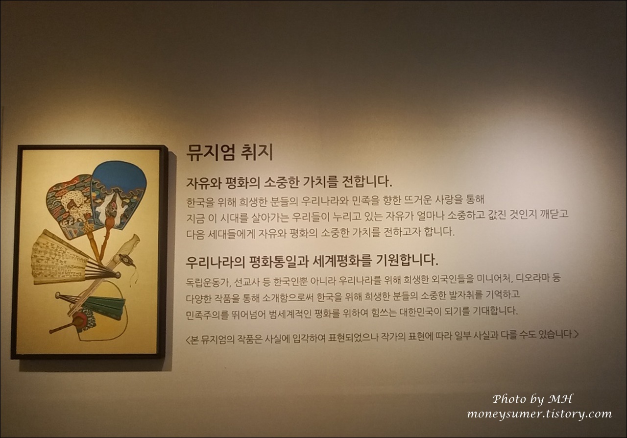 뮤지엄의 취지는 자유와 평화의 소중한 가치를 전하고 우리나라의 평화통일과 세계평화를 기원하는 것이라고 하네요~