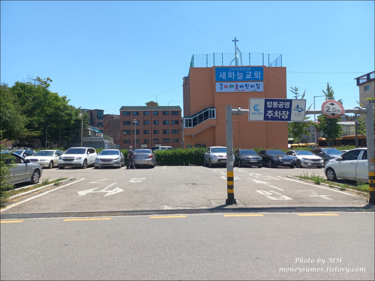 경기 상상 캠퍼스에서 걸어서 13분 정도밖에 안 걸리기 때문에 도보로 이용하셔도 되고 저희처럼 차로 이동하신다면 탑동 공영주차장에 주차를 하시면 된답니다~