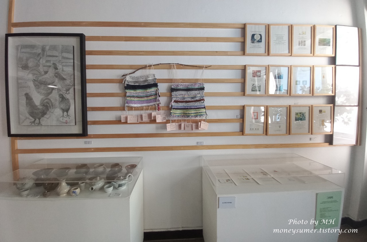 그리고 자기로 만들어진 그릇, 접시와 주전자 등이 아기자기하게 전시되어 있어요~
