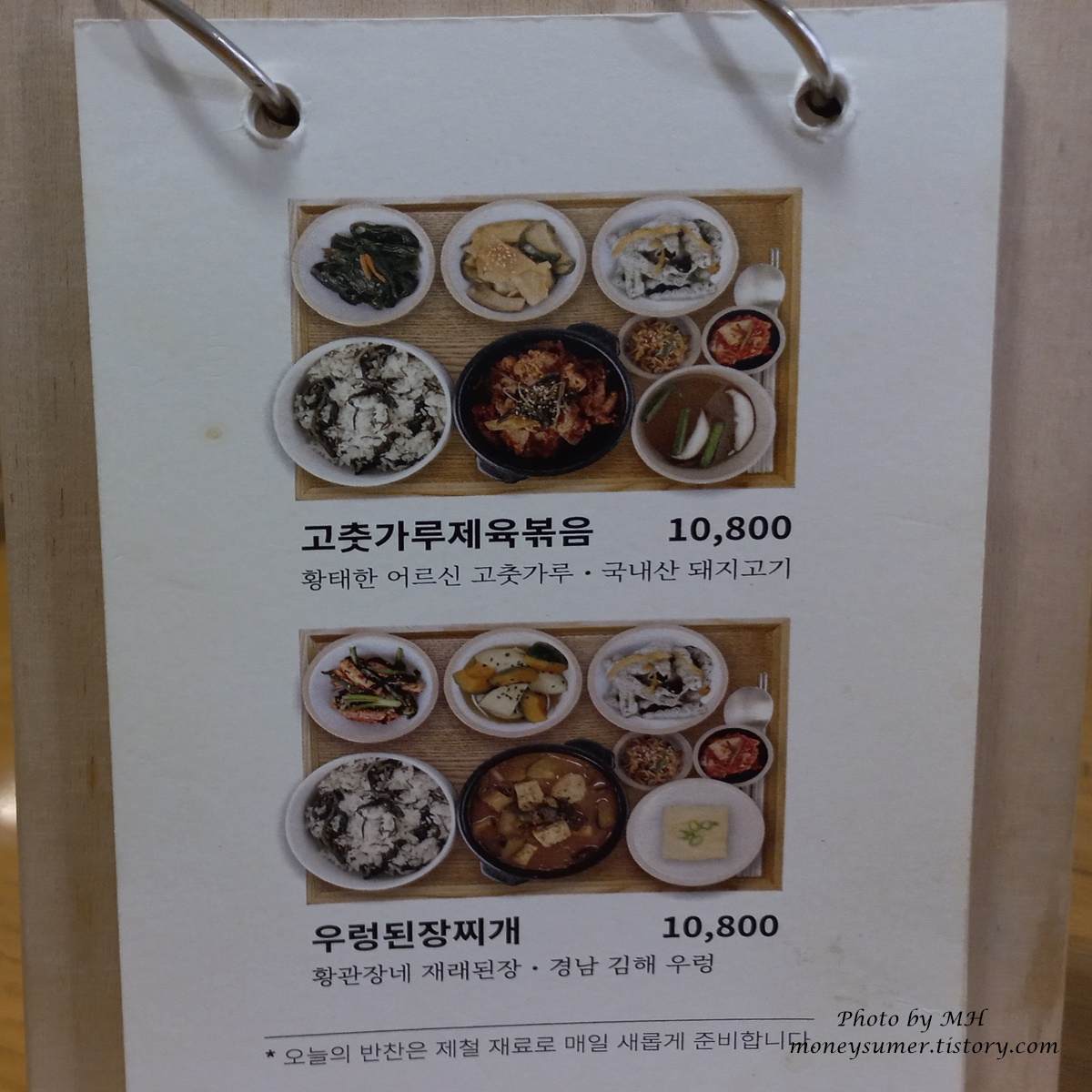 드디어 제가 주문한 우렁된장찌개(10,800원)가 나왔어요~ 밑반찬이 딱 봐도 건강식인데 거기다 청정재료 본연의 맛을 전하기 위해 속 편한 저염식이라니 정말 건강한 밥상이네요~