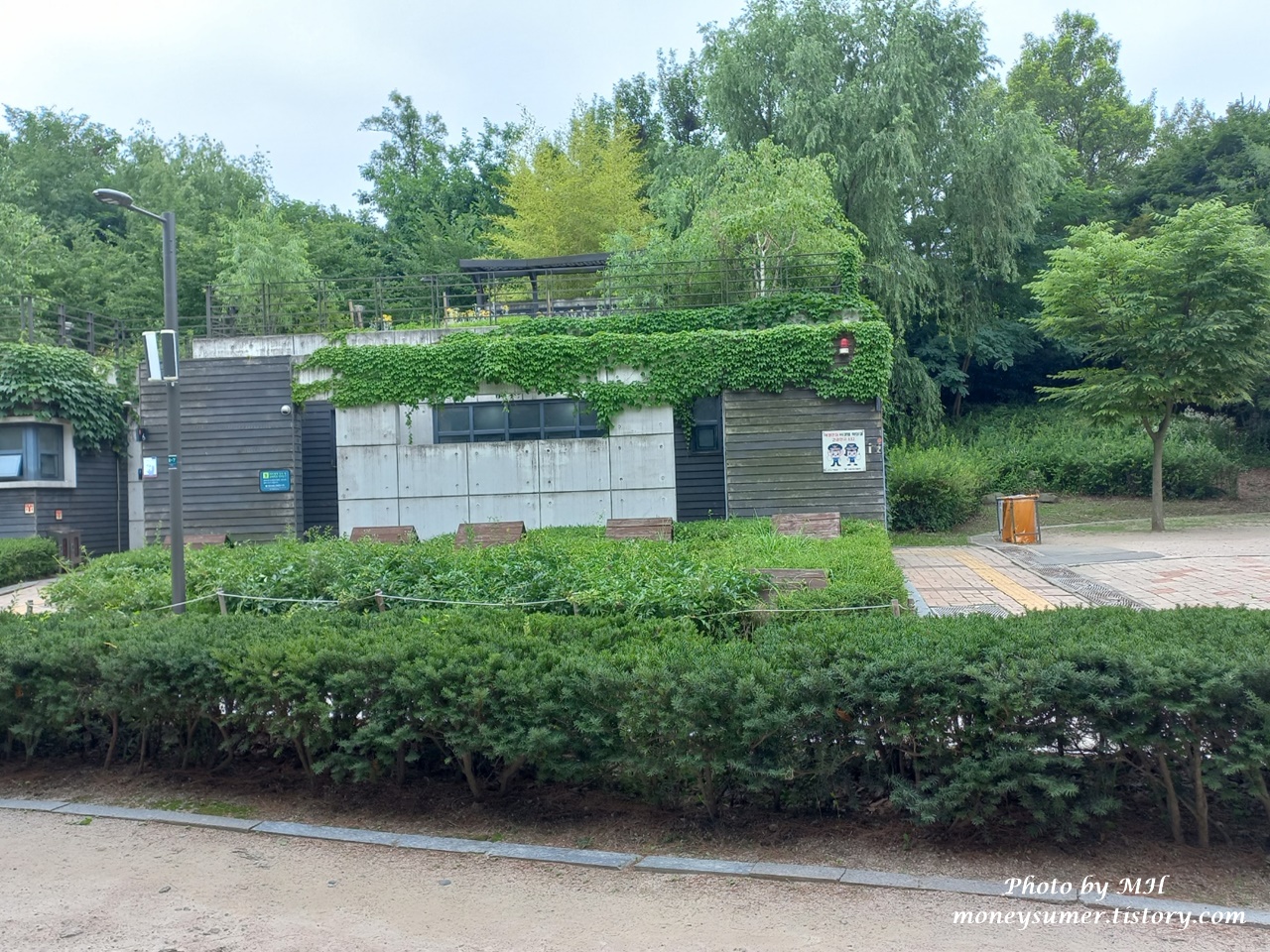 숲속놀이터도 있어요. 아이들이 놀다가 화장실을 급하게 찾을 때가 있는데 다행히 놀이터 바로 옆에 화장실이 마련되어 있어 좋네요~