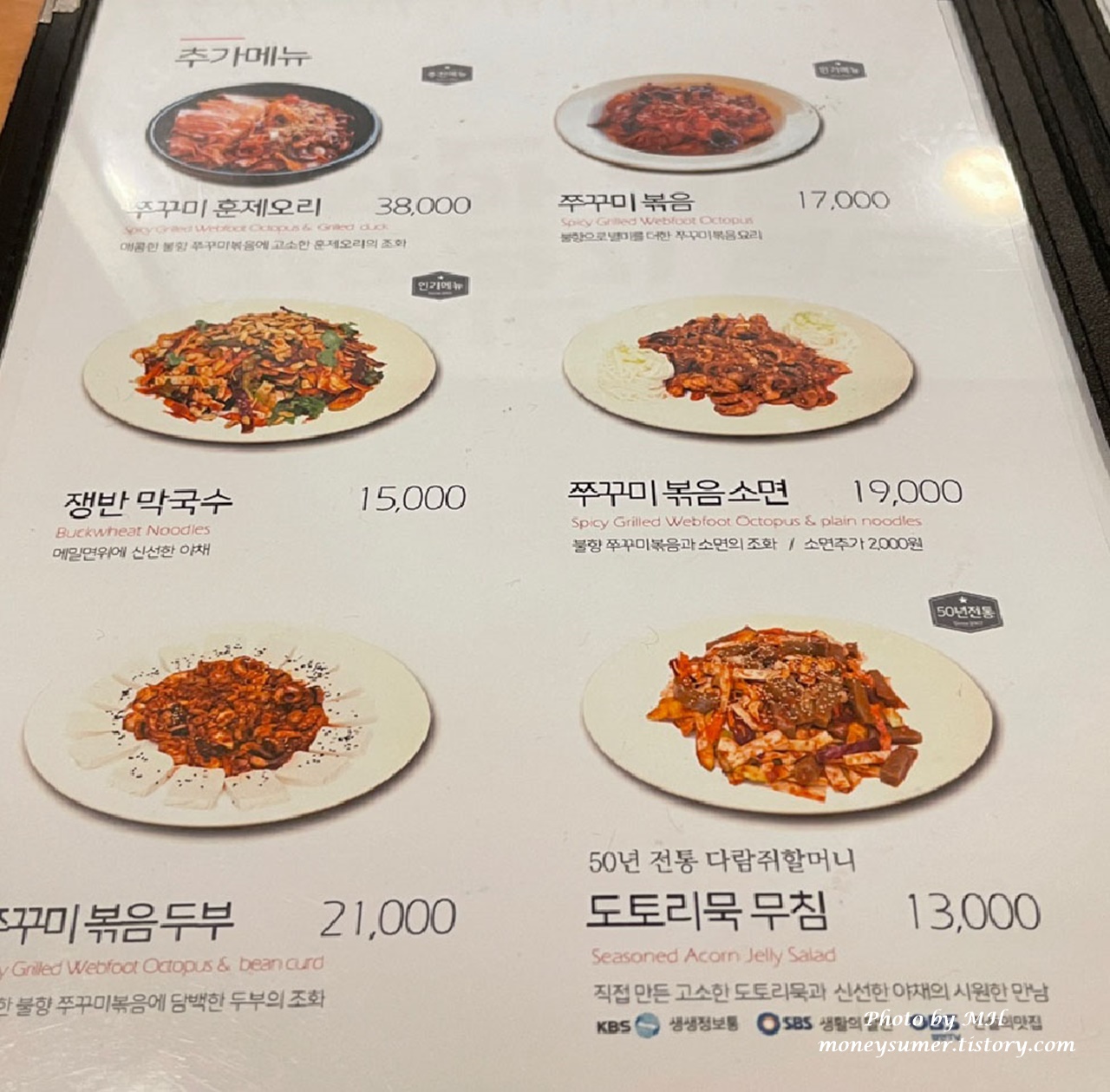 추가 메뉴와 단품 메뉴가 있어요~