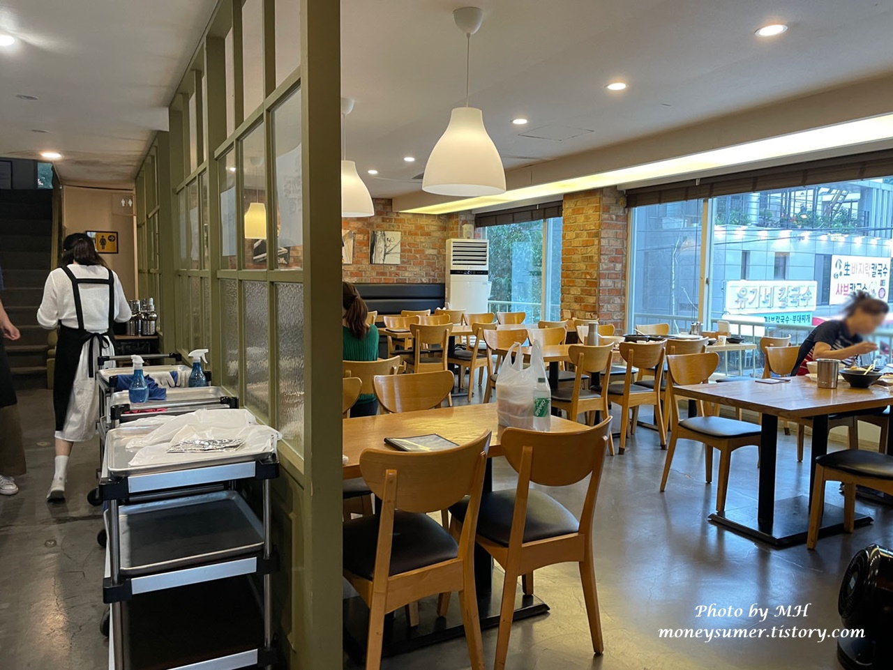 실내 모습은 깔끔해서 좋긴 하지만 테이블 간격이 좀 좁게 느껴지는 곳이에요. 근데 손님들이 많을 때는 이마저도 부족하더라고요~