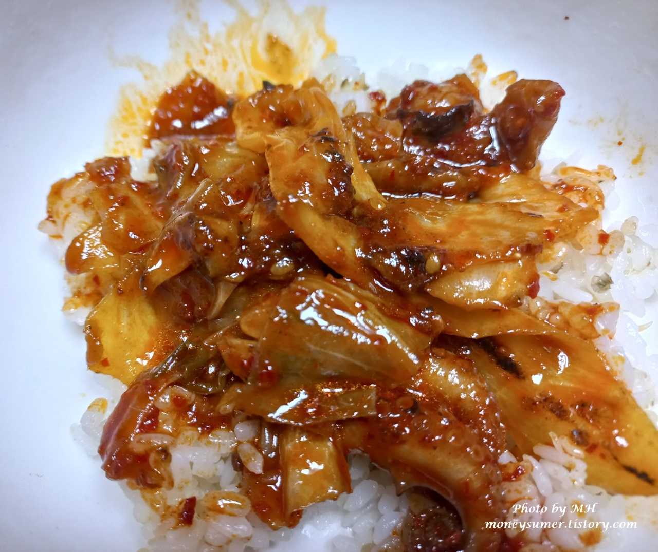 매콤한 맛에 불향이 나는 쭈꾸미볶음을 집에 있는 밥과 함께 먹다가 매워서 콩나물까지 첨가해서 먹었어요~ 맵긴 하지만 없던 입맛도 되살아나는 맛이랍니다~