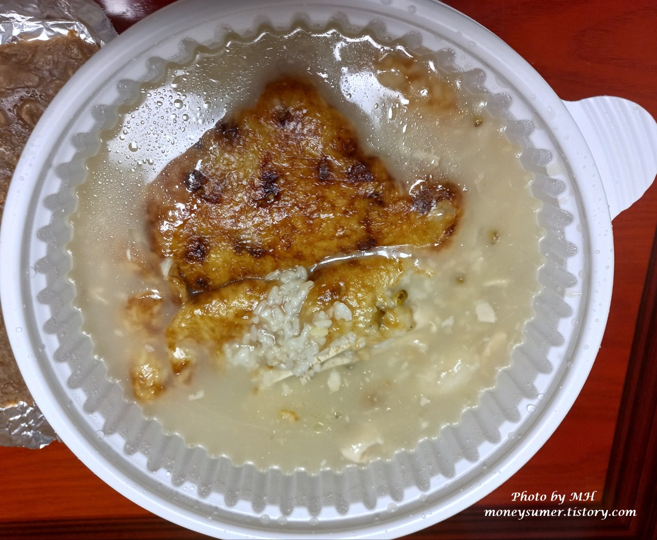 누룽지백숙을 주문하면 서비스로 주는 도토리 전이예요~ 포장을 해서 그런지 조금 눅눅해지긴 했지만 부드러운 도토리 전이 너무 맛있어요. 음식점에서 막 나온 전을 먹어야 더 맛있을 텐데 아이들이 이제는 식당가기를 귀찮아하는지라~ㅠ