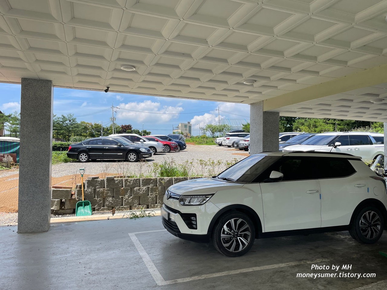 야외 테라스에서 차를 마시진 못했지만 주변 경치 구경은 했어요~ 테라스 앞쪽으로 주차장이 보이고