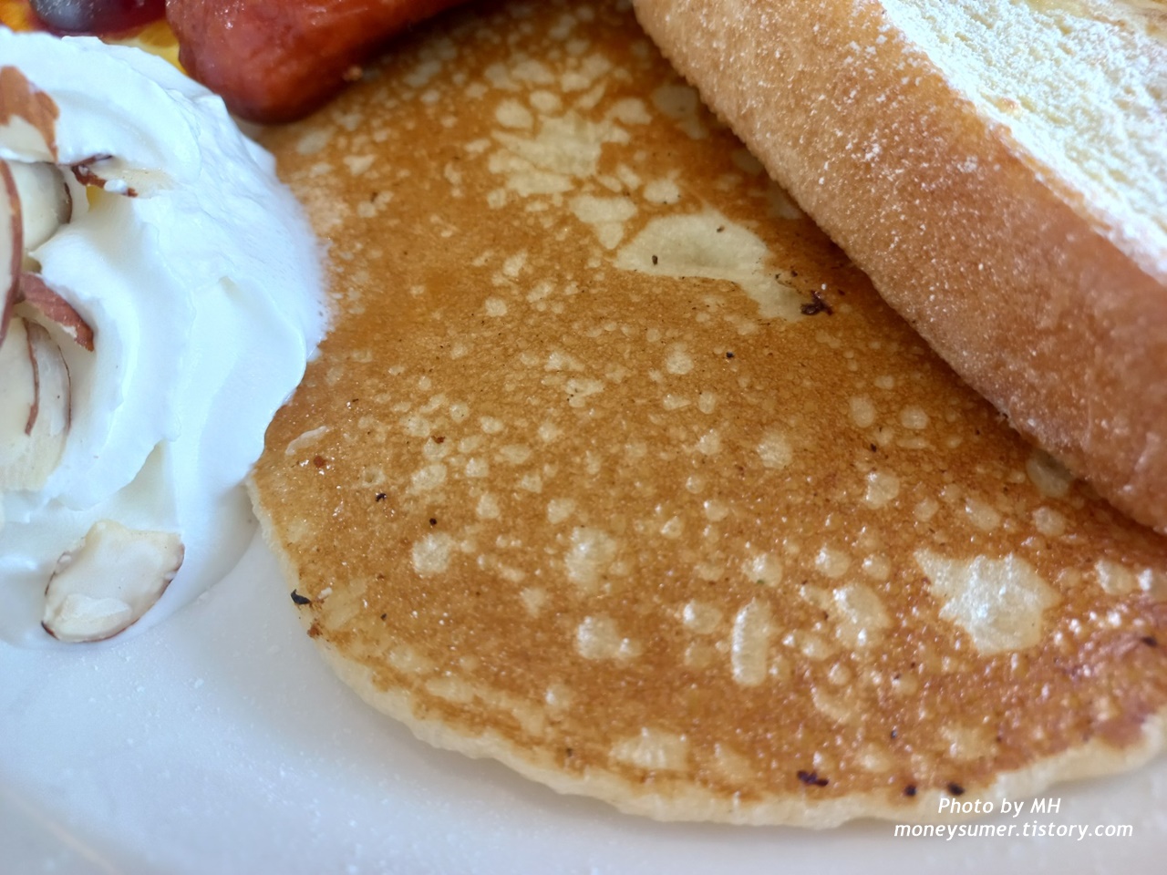 안쪽에는 노릇하게 잘 구워진 팬케이크도 있답니다. 깔끔한 모습이 아니라 약간 아쉽긴 하지만 맛은 좋았어요~
