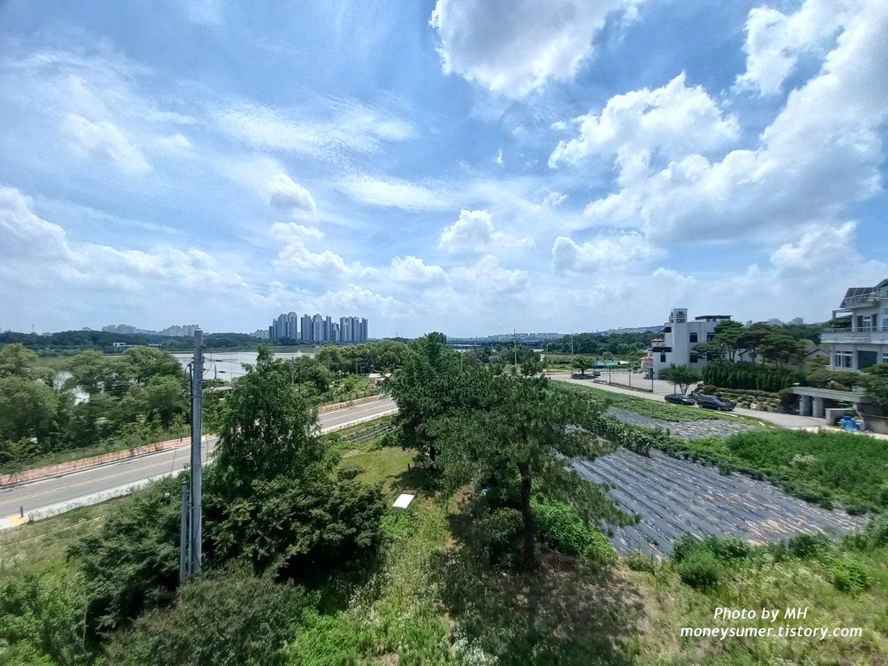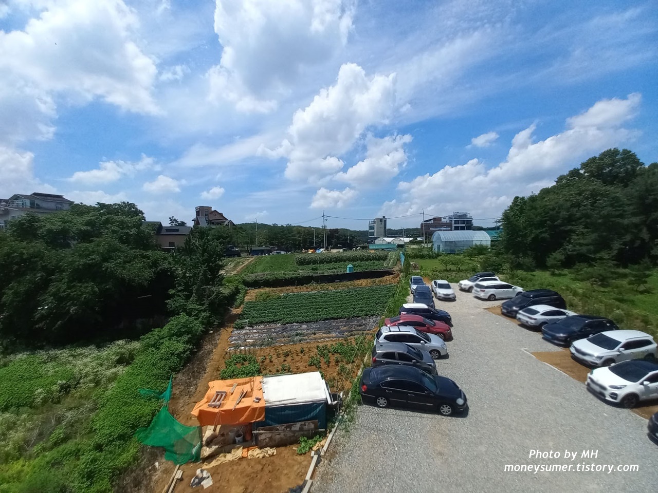 나무와 밭들도 보이고