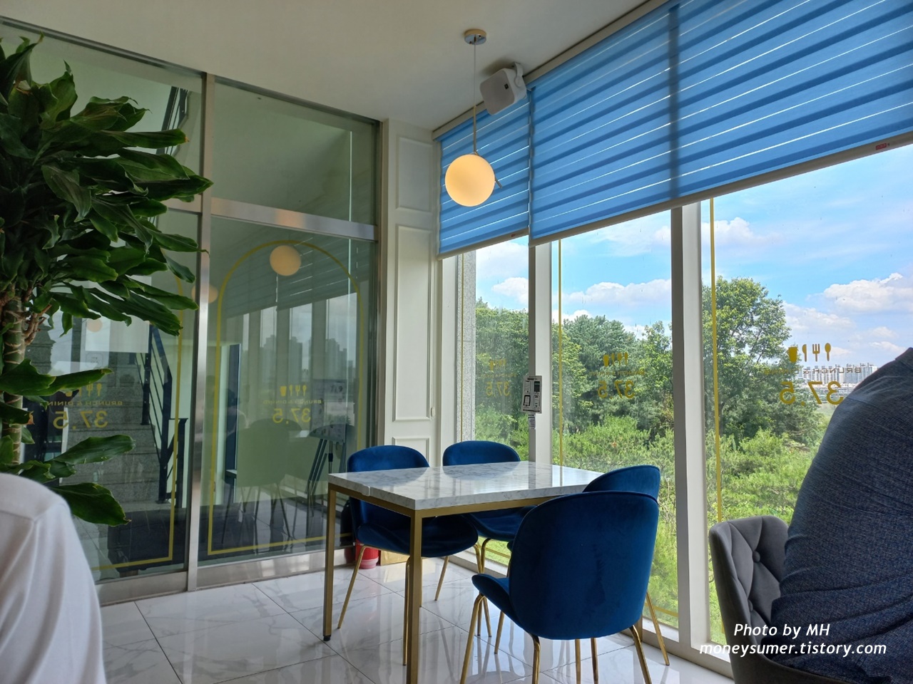 창가 자리에 앉고 싶었지만 저희가 갔을 때는 창가 자리가 다 찼지 뭐예요. 조금 후에 창가 자리 손님이 가시긴 했지만 또 자리 옮기기엔 번거로워서 그냥 앉던 자리 계속 앉았어요. 이런 것도 보면 참 타이밍이 중요한 것 같아요~ 창가 자리가 아니어도 바깥경치가 보이긴 하더라고요~