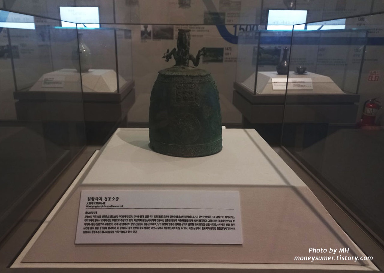통일신라시대의 27.5Cm의 작은 청동 법종인 원향 사지 청둥 소종은 출토지가 분명해서 불교미술사적 가치가 높다고 하네요~
