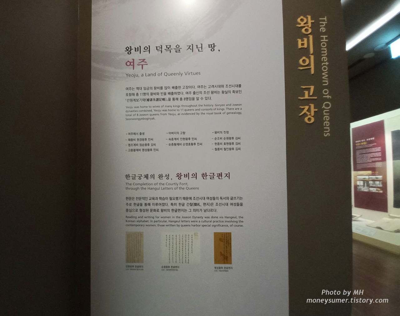 인현왕후, 순원왕후, 명성황후가 쓴 한글편지가 전시되어 있어요. 몇백 년이 흐른 지금에도 조선시대 왕비들이 쓴 한글편지를 볼 수 있다는 게 신기해요. 역사적 유물이 중요함을 다시 한번 느끼게 되는 계기가 되었답니다~