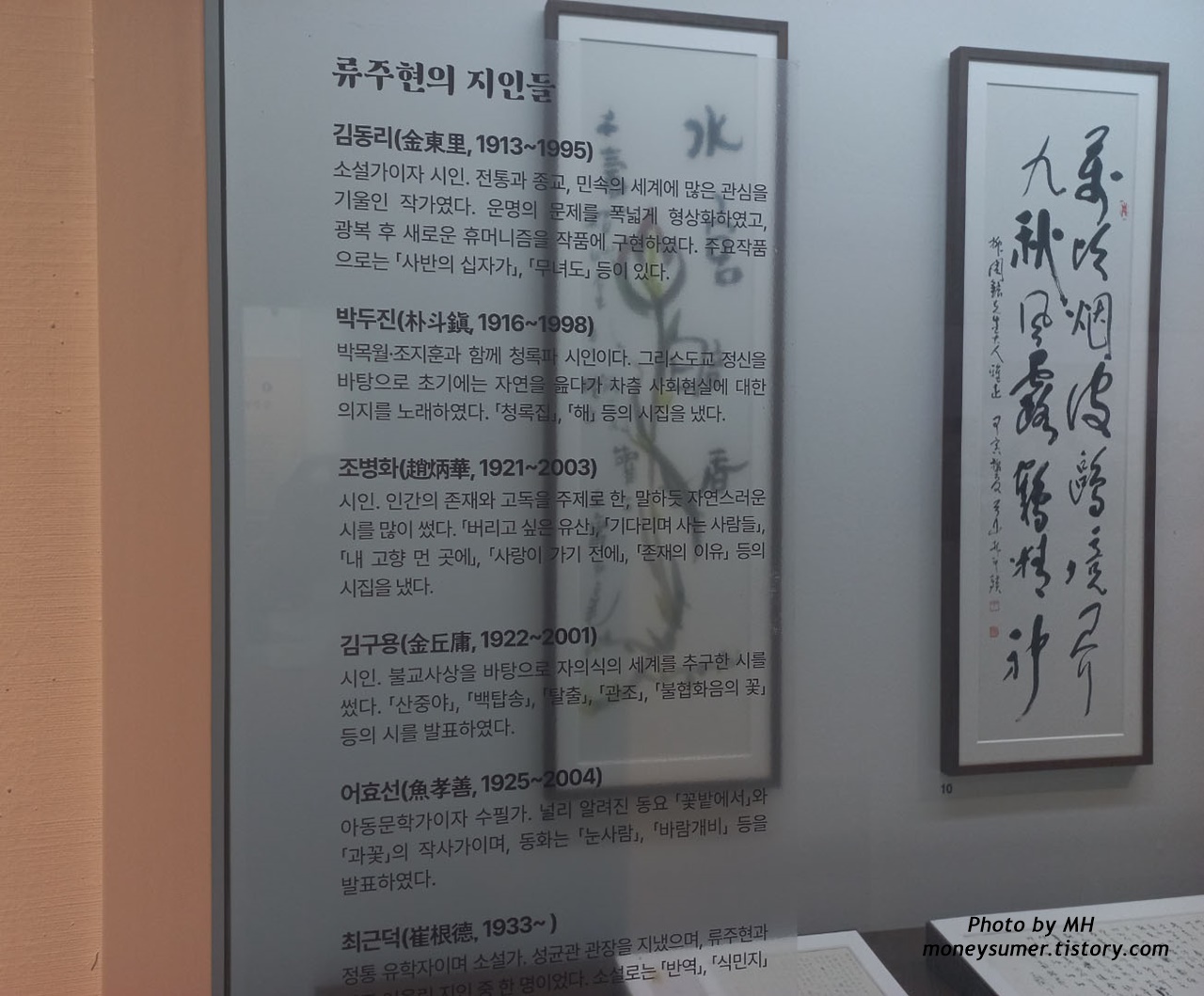 류주현의 일대기와 관련 책들이 전시되어 있어요. 류주현은 1921년 여주에서 태어나 1982년에 숙환으로 별세했고 대표작으로는 「조선총독부」,「대한제국」,「대원군」등의 역사소설과 「자매 계보」,「태양의 유산」,「남한산성」등 많은 소설이 있답니다.