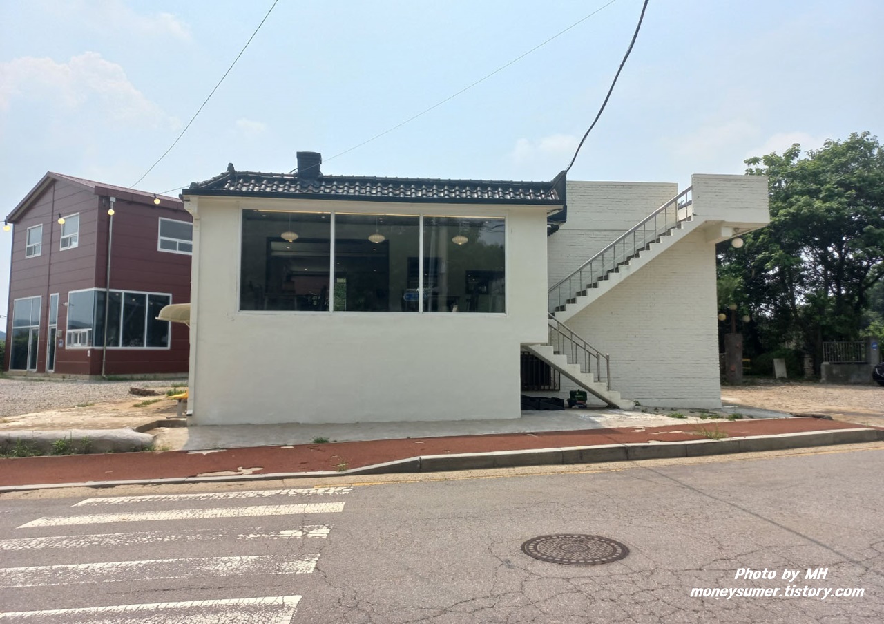 원래는 다른 카페를 찾아서 가고 있었는데 전에 보이지 않았던 흰색 건물의 카페가 눈에 띄더라고요~