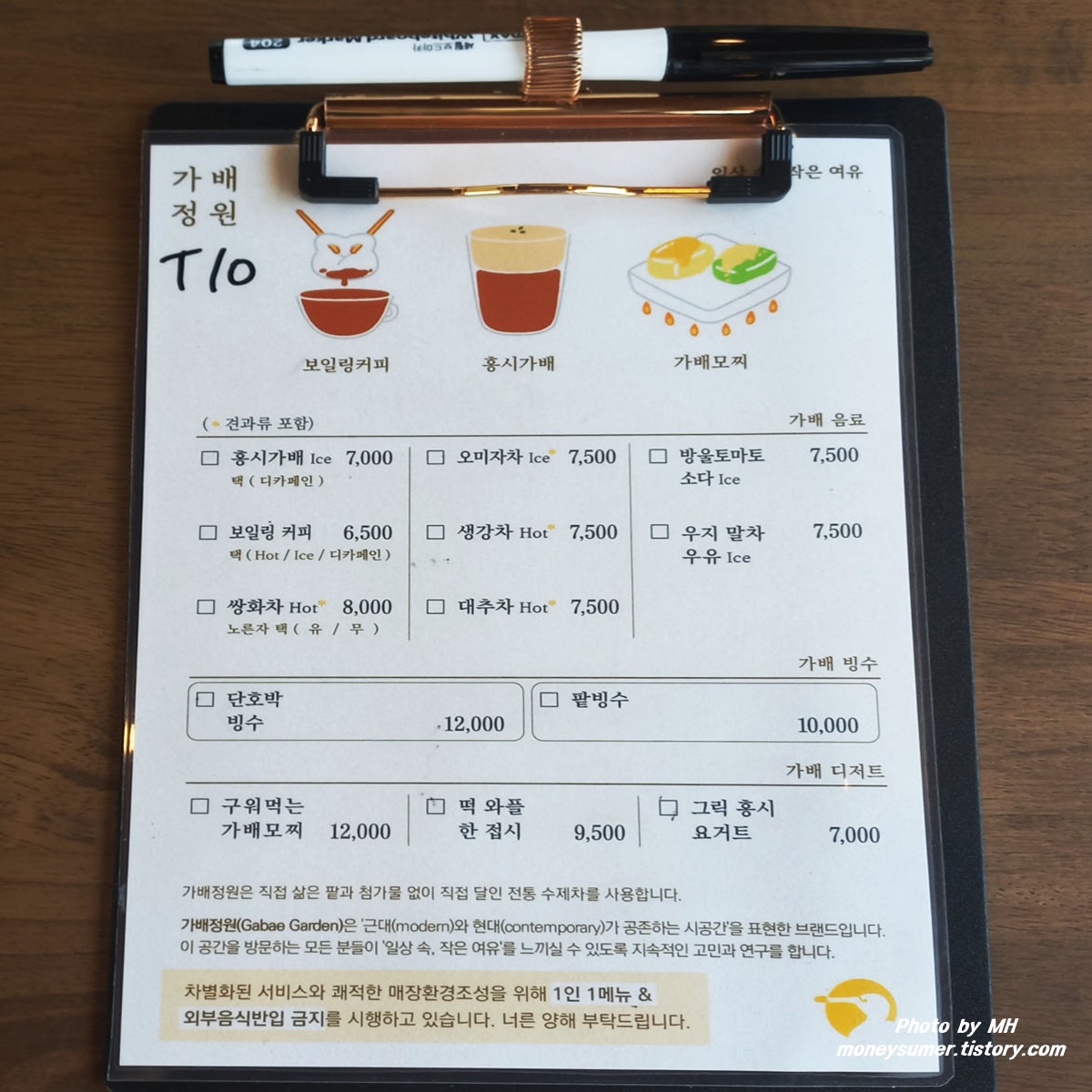 가배 정원 메뉴예요~ 커피류보다는 차 종류가 많아서 전통찻집 같아요~