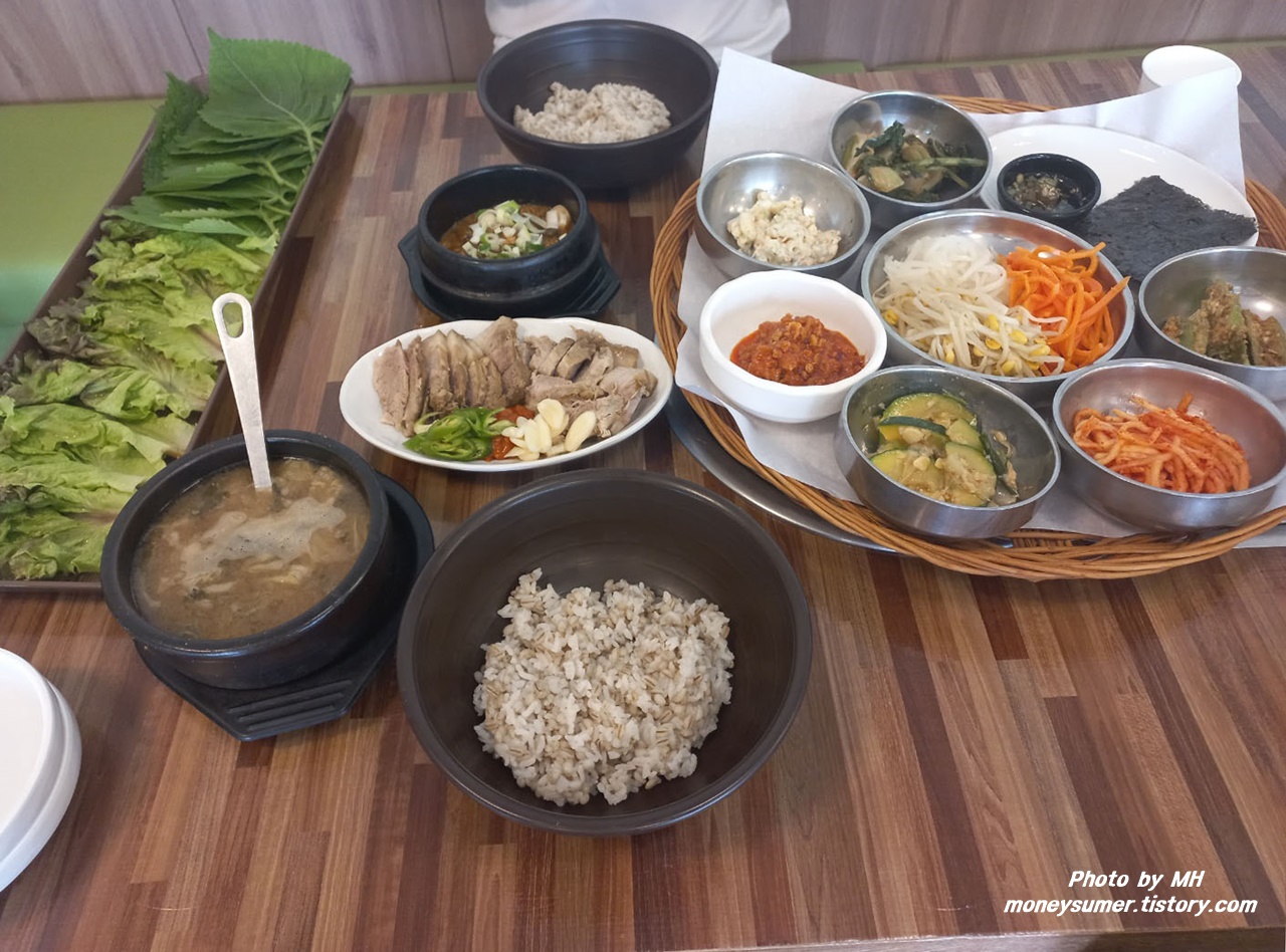 보리밥정식을 먹으면 수육 쌈과 비빔밥의 두 가지 맛을 볼 수 있어서 좋았어요. 맛도 있고 건강식이라 너무 만족스러운 점심이었답니다. 직원분들도 친절하셔서 더욱 좋았고요~ 나중에 예산을 또 오게 되면 재방문 의사 충분히 있는 곳이랍니다~