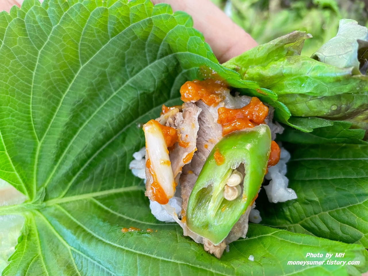 우렁쌈장까지 넣어서 쌈 싸 먹으니 말해 뭐하겠어요. 너무 맛있더라고요~