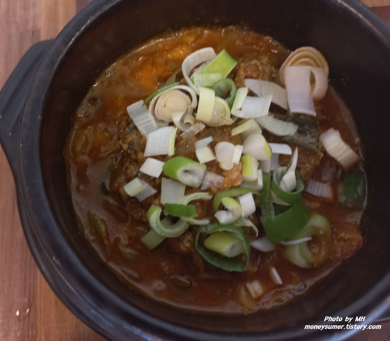 집된장 맛이 나는 된장국은 신랑이 맛있다고 하더라고요. 얼큰한 걸 좋아하는 저는 된장국이나 된장찌개를 할 때도 고추장을 조금 넣는 편이라 제 입맛에는 좀 아니었지만 맛없는 편은 아니었어요~
