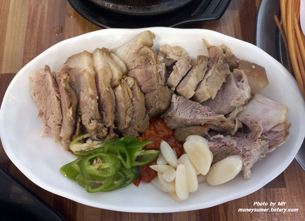 정식 메뉴라 나온 수육의 맛은 고기 살은 부드럽고 껍질 부분은 쫄깃한 게 너무 맛있더라고요~
