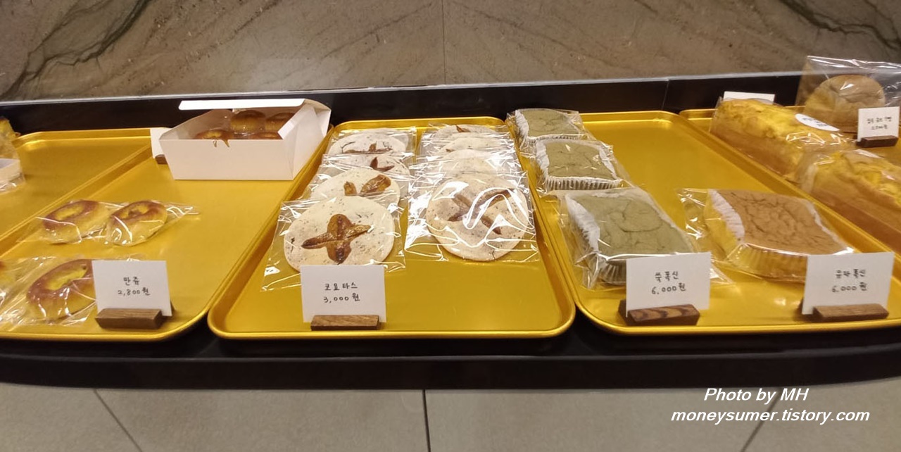 늦은 시간에 가서 그런지 빵 진열대에 비어있는 공간들이 많더라고요~